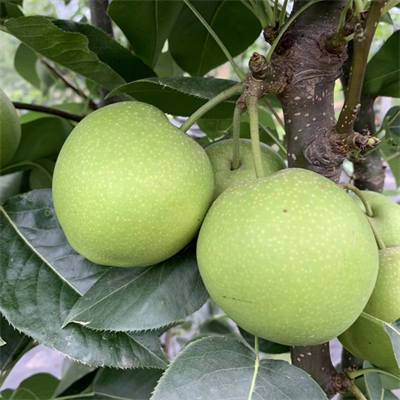 翠玉梨品種是早熟砂梨品種,樹姿較開張,樹勢強健。翠玉梨品種的果實為圓形,果形端正,單果重200克左右,果頂稍平,果皮顏色為淺綠色,果面比較光潔,果點極小,萼片脫落,果梗粗短。翠玉梨品種的果肉顏色為白色,肉質(zhì)很細嫩,汁水較多,口感脆甜,果心極小,可食率約85%左右,可溶性固形物含量為11.5%左右。
